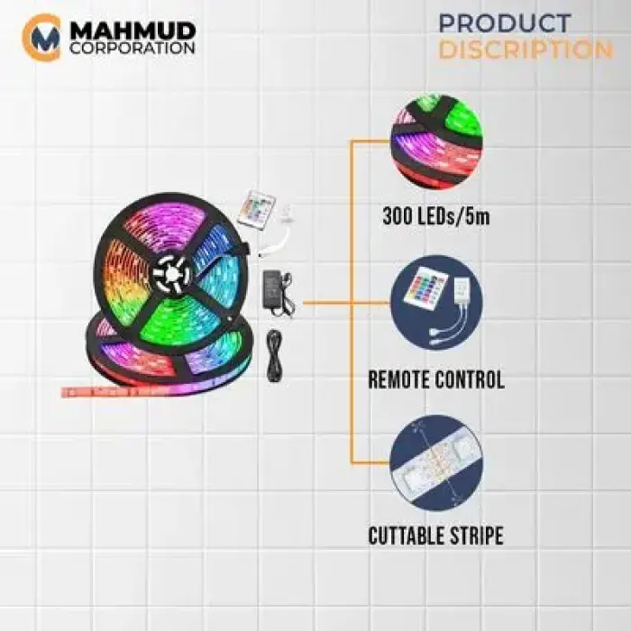 এই LED মুড লাইটস আপনার ঘর বা অফিসের পরিবেশকে আরও রঙিন ও চমকপ্রদ করে তুলতে সহায়তা করবে, যা রাতের সময়ে এক অন্যরকম অনুভূতি সৃষ্টি করবে।